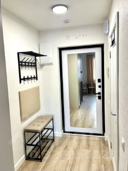 Квартира оборудована необходимой техникой (стиральная машина, холодильник, микроволновка, чайник, плита) и мебелью (диван с независимым пружинным блоком, вместительный шкаф, прихожая и др.). Возможна установка кондиционера по договоренности. Во дворе есть закрытая зона для отдыха.