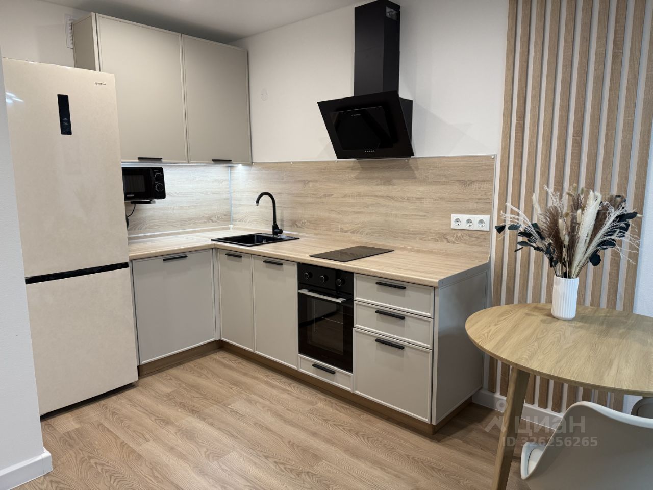 Кухня оборудована по максимуму- большой холодильник, варочная, вытяжка, посудомойка, микроволновка.