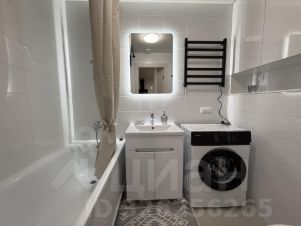 В ванне встроенный шкафчик для хранения, стиральная машинка.