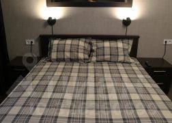 В квартире есть вся необходимая мебель: двуспальная кровать с высоким ортопедическим матрасом, тюль, шторы блекаут, кресло, кухонный диванчик, пуф, стулья, торшер, прикроватные светильники, вместительный шкаф - купе с зеркалом, полки и тумбочки, прихожая, встроенная кухня с надежной сантехникой GROHE. Бытовая техника: большой телевизор LG, высокоскоростной интернет МТС, двухкамерный холодильник GORENJE, электроплита и микроволновка GORENJE, стиральная машинка LG, вытяжка, электрочайник, удобный вертикальный пылесос, сушилка для белья.