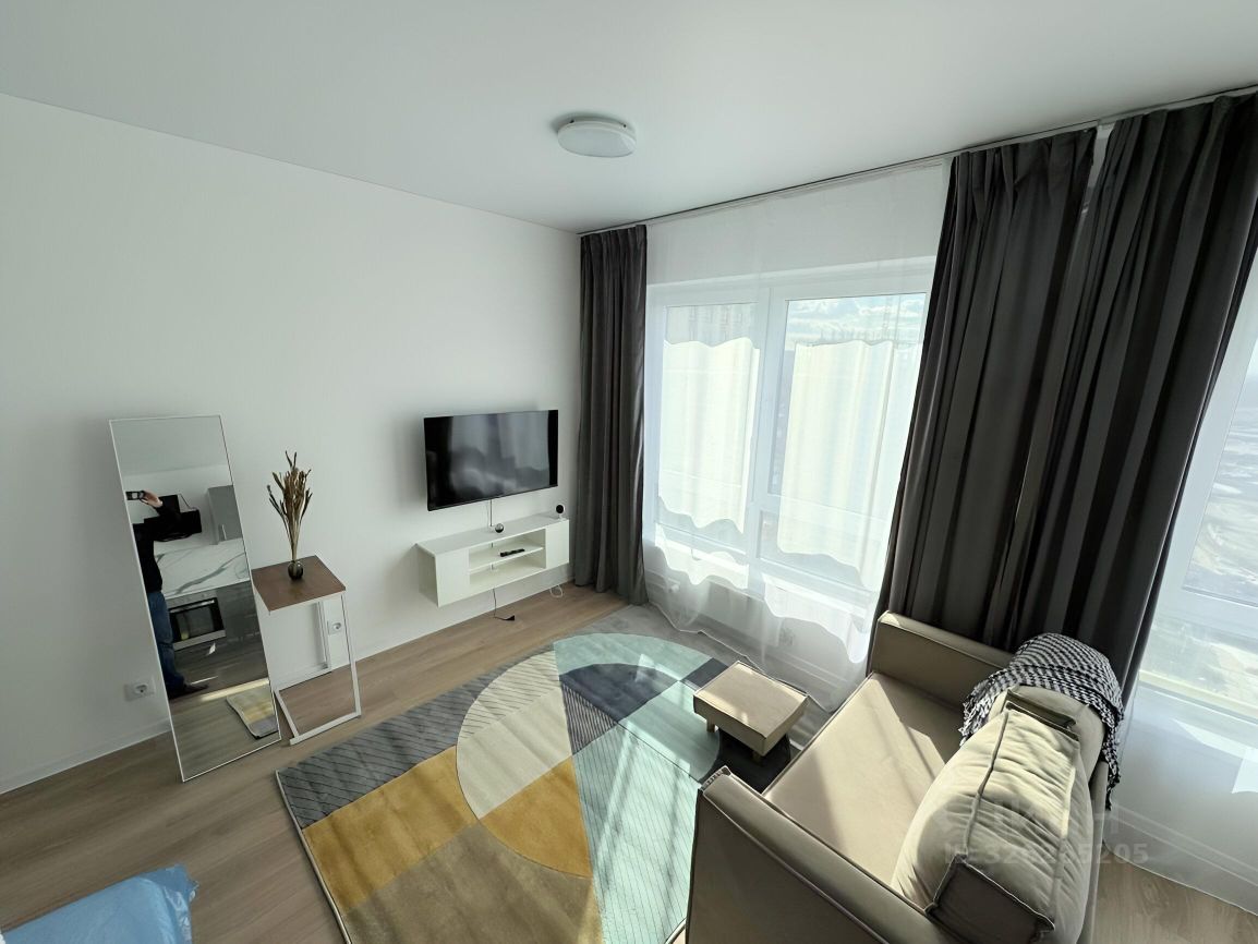 С 01.02 сдаётся однокомнатная квартира на 26 этаже современного 33-этажного дома, построенного в 2024 году. Общая площадь составляет 33,5 кв. м.