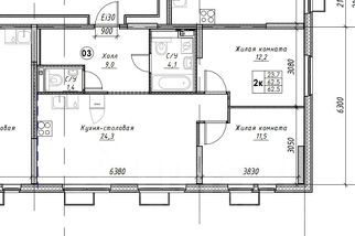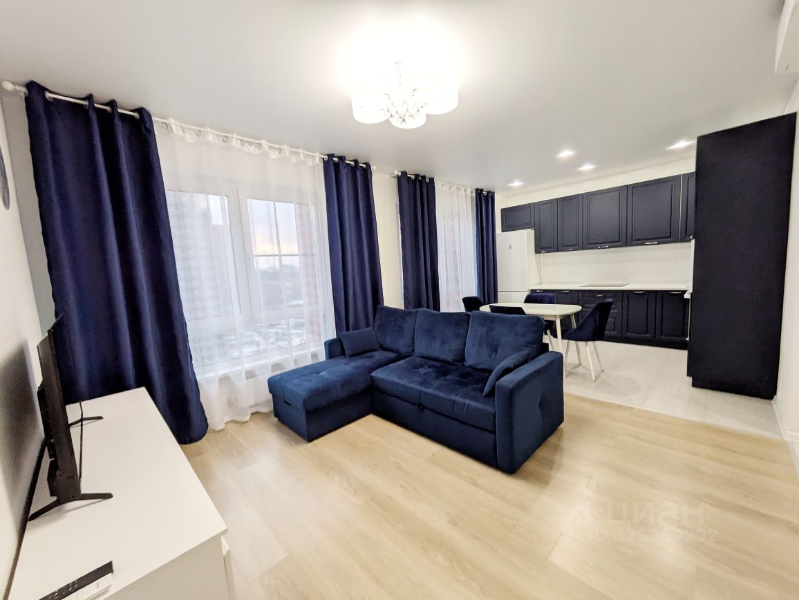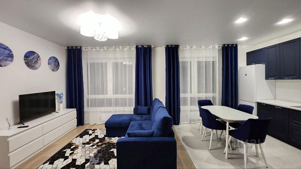 Объединённая просторная кухня-гостиная и 2 изолированные комнаты: спальня и комната свободного назначения (кабинет/детская).