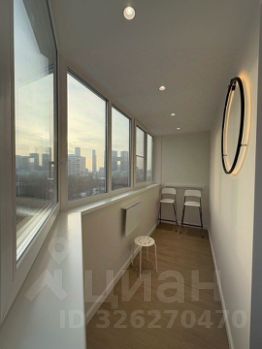 Из окон открывается приятный вид на город. Очень просторная лоджия застеклена и оборудована местом для работы и отдыха. На стене эргономичная сушилка для белья.