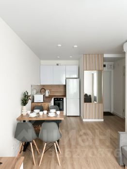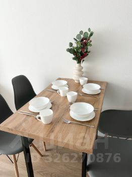 - просторная кухня-гостиная (кухонный гарнитур, холодильник, варочная панель, духовка, СВЧ, ПММ, чайник, набор посуды, кондиционер, выделенная обеденная зона, раскладной диван с постельными принадлежностями, телевизор и тумба)