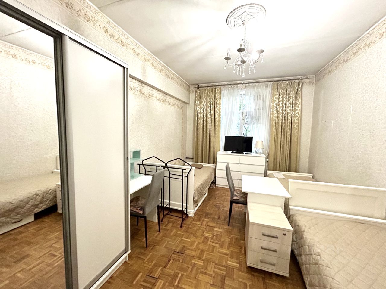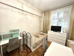 Комната изолированная, закрывается на ключ, светлая, на полу паркет, лепнина на потолке. Сталинский дом (подобные квартиры только в центре Москвы; хорошая двухкомнатная квартира стоит от 100 т., эта трёхкомнатная; не нужно сравнивать с бюджетными комнатами в панельных домах с низкими потолками; к примеру на Новинском бульваре было бы 25 т.). В доме железобетонные перекрытия, он расположен во дворе, тихо. Окна квартиры выходят во двор (так же редкость), летом прохладно, зимой тепло.