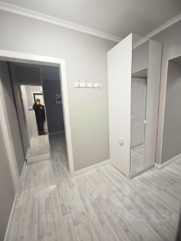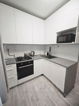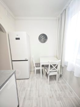 В квартире есть все необходимое для комфортного проживания. Просторная комната и кухня обставлены мебелью. Из техники: кондиционер, холодильник, посудомоечная и стиральная машины. Санузел раздельный, с ванной. Окна выходят во двор, поэтому в квартире тихо и спокойно.