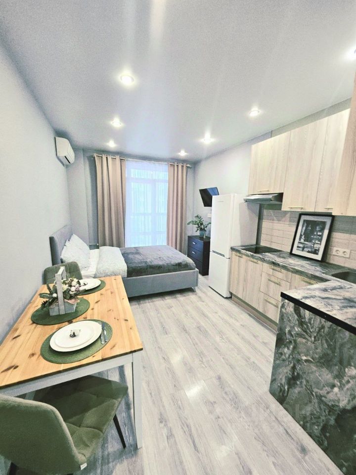 Сдаю в долгосрочную аренду уютную студию 25 м2, для одного человека или пары. БЕЗ АГЕНТСКОЙ КОМИССИИ! Оснащена всей необходимой для жизни техникой: стиральная машинка, холодильник, телевизор, микроволновая печь, кондиционер. А также мебелью: кровать с подъемным механизмом, шкаф для одежды, комод, тумбочка. Большой балкон застекленный. Окна выходят во двор. Удобный выход из подъезда к остановке общественного транспорта.