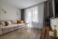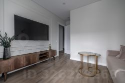 Квартира с дизайнерским ремонтом, полностью готова к проживанию. В квартире никто не жил. В комнатах и на кухне есть вся необходимая мебель. Из техники имеются кондиционер, холодильник, посудомоечная и стиральная машины, а также телевизор. В санузле есть ванна. Планировка удобная, есть гардеробная комната и просторная лоджия.