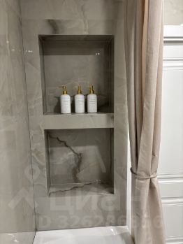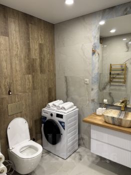 просторный красивый функциональный совмещенный санузел со стиральной машиной и электрическим полотенцесушителем, большим зеркалом с сенсорной подсветкой;