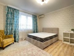 В квартире 2 изолированные комнаты, кухня 8.3 кв. м, застекленная лоджия, совмещенный санузел. Квартира полностью готова к заселению: кухня оборудована мебелью и встроенной техникой, также есть чайник и холодильник. В спальне большая двухспальная кровать, в гостиной раскладной диван и телевизор, места для хранения. В прихожей стоит большой шкаф, куда поместятся все вещи. Для комфортного проживания в спальне установлен кондиционер. В санузле большая ванна, стиральная машина и шкаф для хранения бытовых принадлежностей. В подъезде 2 лифта - грузовой и пассажирский, во дворе большая открытая парковка, где всегда легко найти парковочное место