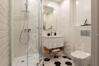 В квартире два санузла. Совмещенный санузел с ванной, раковиной и зеркалом с подсветкой, а также совмещенный санузел с душевой кабиной и раковиной.