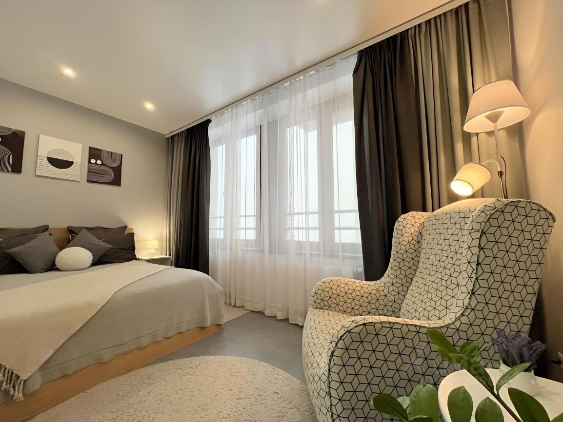 Сдаётся стильная студия в Жилом Комплексе Бизнес-класса "Савеловский Сити" с дизайнерским ремонтом на 38-м этаже. Высокие потолки в 3 метра создают ощущение простора, а окна выходят на Останкинскую башню и Дизайн-завод Флакон.