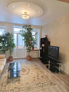 Сдается уютная трехкомнатная квартира в кирпичном доме на пятом этаже из восьми. Общая площадь 88 кв. м, жилая — 56,3 кв. м, кухня — 11 кв. м. Высокие потолки 3 метра создают ощущение простора. До метро "Академическая" всего одна минута пешком, что делает местоположение особенно удобным.