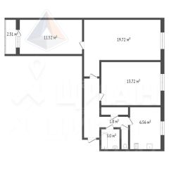 • Две изолированные комнаты + одна проходная, жилая площадь 45,2 м², компактная кухня 6,6 м², раздельный санузел