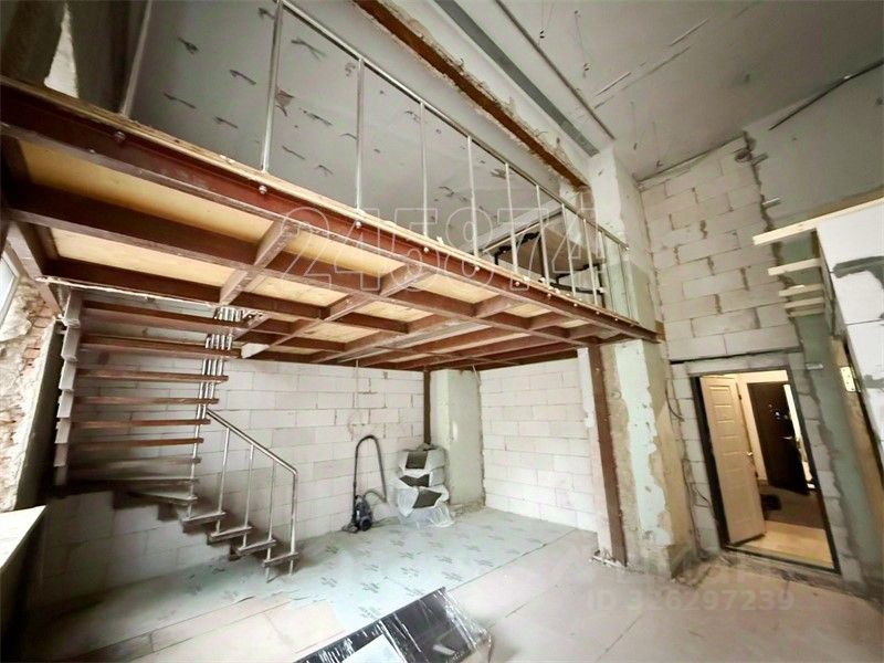 Готовая антресоль, установленная на половине площади. Конструктив позволяет легко увеличить ее на всю площадь, создав полноценный второй уровень.Свобода планировки. Высокие потолки создают ощущение простора и света.
