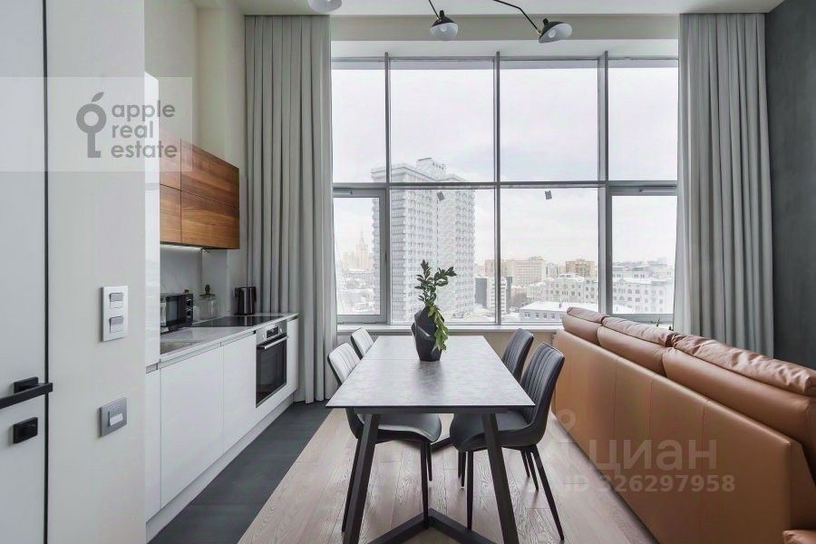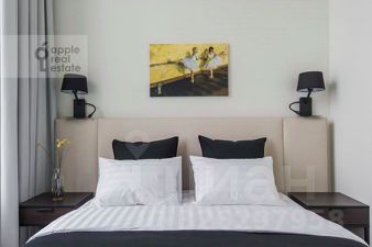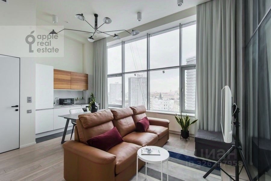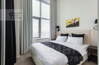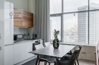 ЖК The Book. Стильная 2-комнатная квартира в новом современном доме. 13 / 26 этаж. Апартаменты. Спален: 1, санузлов: 2. Общая площадь: 44 кв.м. Потолки 4.5 м. Дизайнерский ремонт в современном стиле. Круглосуточный консьерж и охрана, видеонаблюдение на всех этажах. Сногсшибательный панорамный вид из всех окон на Новый Арбат. В наличии: посудомоечная машина, холодильник, приточно-вытяжная система вентиляции и кондиционирования, душевая кабина, стиральная машина, подогрев полов. Телевизор, высокоскоростной интернет. Собственник ИП. Возможна оплата по безналу. Предлагается на срок от 11 месяцев.