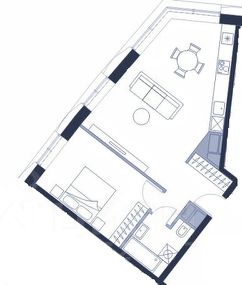 ПАНОРАМНЫЕ ОКНА. Просторная гостинная-кухня необычной формы.