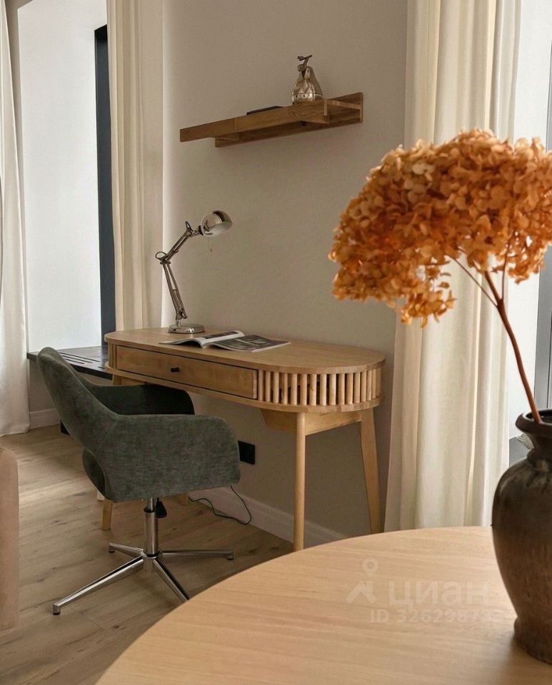 Со вкусом подобрана мебель и декор: удобный диван, письменный стол с креслом для работы. Кухонная мебель отличного качества. Стильная и удобная мебель в спальне.