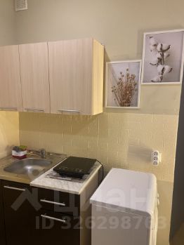 В студии выполнен косметический ремонт. Кухня оснащена необходимой техникой: холодильник, плита и стиральная машина. В комнате установлены новый удобный диван, новый вместительный шкаф. Санузел совмещённый, с душевой кабиной.