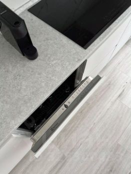 -встроенный холодильник Liebherr, микроволновая печь Samsung, индукционная плита, духовка, посудомойка Electrolux, с автоматическим открытием после завершения мойки