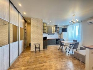 В квартире есть все необходимое для комфортного проживания: современная мебель на кухне и в комнате, кондиционер, холодильник, посудомоечная и стиральная машины. Санузел совмещенный, в ванной установлена полноценная ванна. Просторный балкон предоставляет дополнительное место для отдыха и хранения.