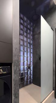 -Стеклянные блоки между ванной и гостиной — эффектная интерьерная фишка