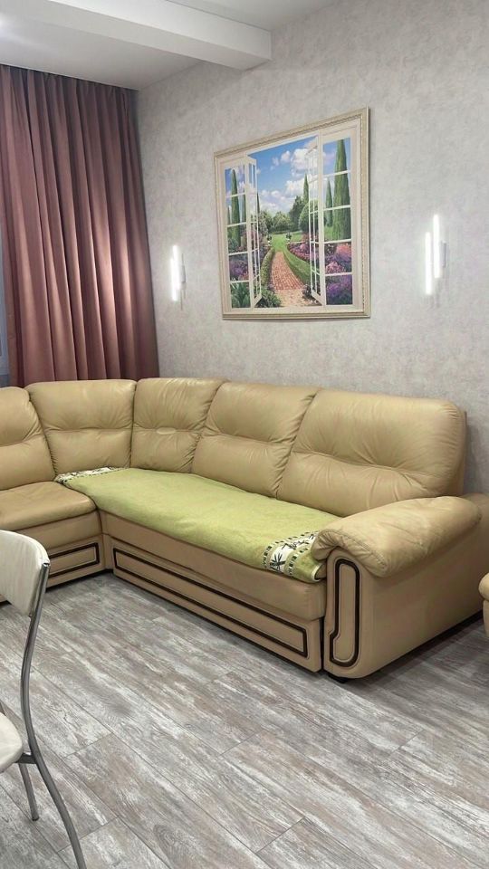 В квартире сделан качественный евроремонт, есть вся необходимая мебель и техника. На кухне установлена мебель, а также в комнате есть всё для комфортного проживания. Для вашего удобства в квартире есть холодильник, телевизор и стиральная машина. Санузел совмещённый, есть ванна, поэтому можно расслабиться после долгого рабочего дня.
