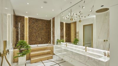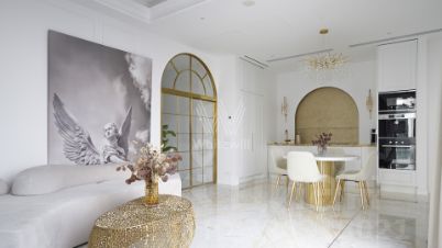Эти апартаменты словно сотканы из света, камня и музыки. Парижские салоны перекочевали на высоту 250 метров над Москвой, превратив гостиную этой квартиры в зал для светских приемов с изящными золотыми арками на высоте неба.