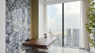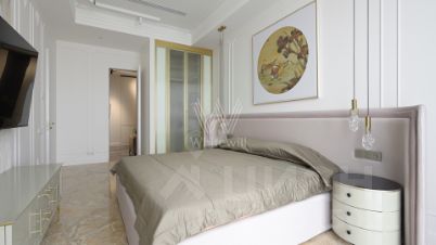 Главное об апартаментах: 69 этаж, 135 метров. Гостиная, две видовые спальни, отдельный кабинет. Премиальная отделка из натурального камня и дерева. Виды на Дом Правительства, Лужники, сталинские высотки и Останкинскую башню.