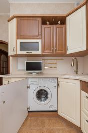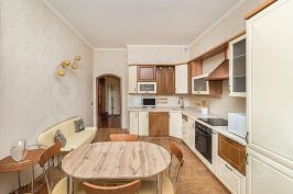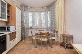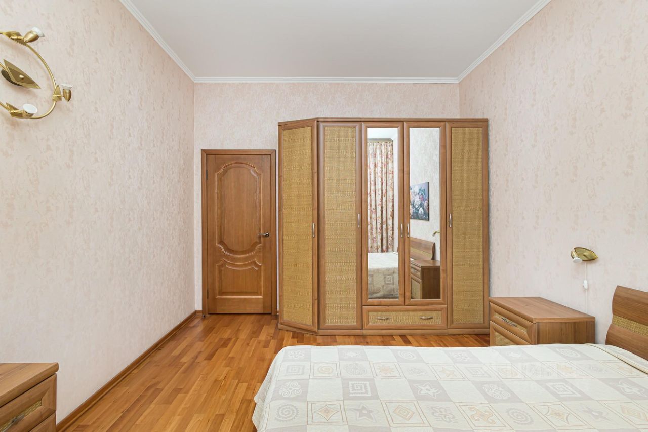 В квартире имеется все нeобходимое для комфортного проживания. Кухонный гарнитур оснащен бытовой техникой: вытяжка, микроволновая печь, варочная панель, духовой шкаф. Холодильник, стиральная машина. В комнатах имеется 2х спальная кровать, прикроватные тумбы, шкаф для хранения вещей, раскладной диван, телевизор,письменный стол, шкаф для книг. В прихожей- вместительный шкаф для одежды и обуви.