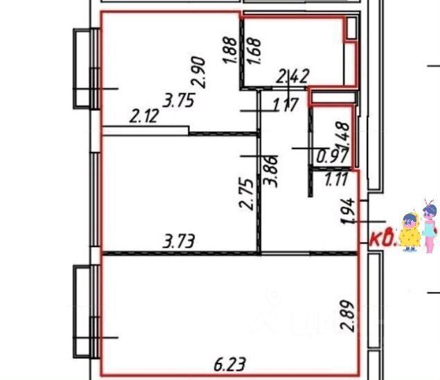 Площадью 51кв.м
