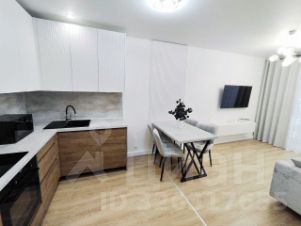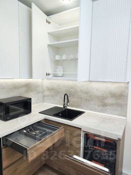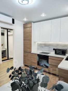Прoсторная кухня-гостиная, укомплектованная всей необходимой мебелью и техникой: