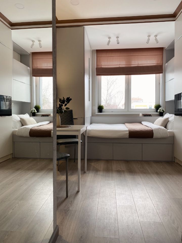 Студия полностью укомплектована к заселению, вплоть до посуды и столовых приборов!