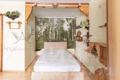 Мебель в комнате - двуспальная кровать 200х140 см, двуспальный раскладной диван, стенка-шкаф.