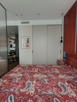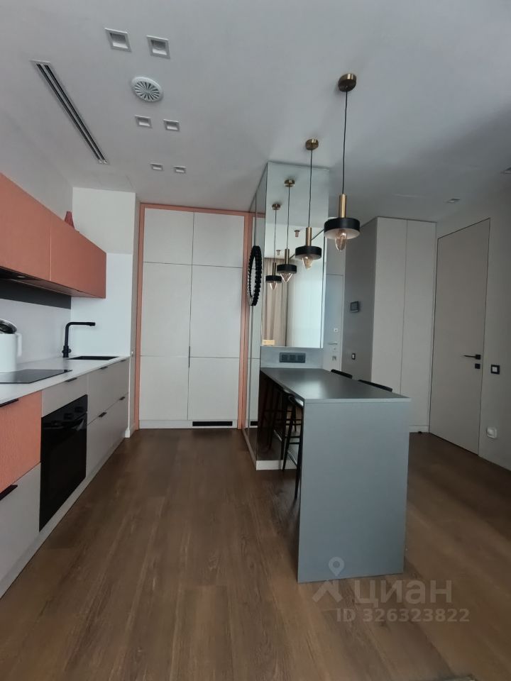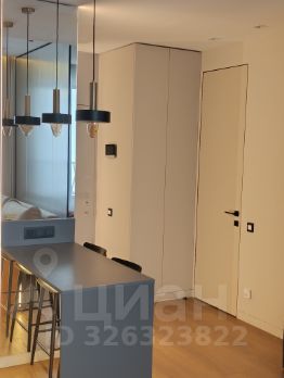 Планировка: Современный тип планировки квартиры включает просторную кухню-гостиную и изолированную спальню. Такая планировка делает пространство комфортным и функциональным: в кухне-гостиной зонировано пространство на зоны отдыха и столовой, зона спальни отгорожена с помощью матовой перегородки. Высокий этаж, открытый вид из окон, высокие потолки (3м), большие окна и зеркальные поверхности шкафов в коридоре - создают ощущение пространства и света. А уют и интимность квартире придают большое количество подсветок.