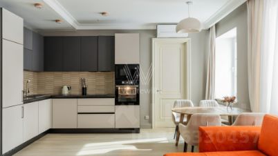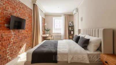 Квартира с 1 спальней общей площадью 60 м² в историческом особняке в Серебряническом переулке. Выполнена дизайнерская отделка в современном стиле в лаконичных тонах. Стены спальни и гардеробной оформлены открытой кирпичной кладкой. Спланирована кухня-гостиная с обеденной зоной, спальня с гардеробной, ванная комната, прихожая. Квартира полностью меблирована и оборудована бытовой техникой. Большое количество окон наполняют пространство светом и открывают вид в тихий двор.