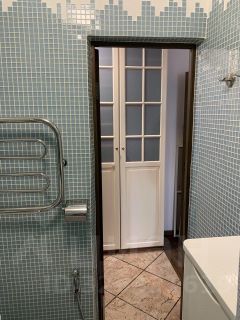 Аккуратный санузел с душевой кабиной.