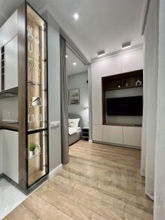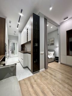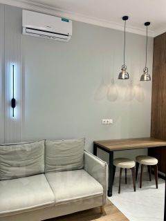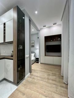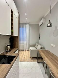 Квартира с дизайнерским ремонтом и полностью готова к проживанию. Просторная студия оборудована всем необходимым: есть кондиционер, холодильник, посудомоечная и стиральная машины, телевизор. В кухне и жилой зоне предусмотрена вся нужная мебель. Ванная комната оснащена современной душевой кабиной. Все детали интерьера продуманы до мелочей, чтобы создать комфортную и уютную атмосферу.