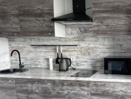 В квартире - спальня, просторная кухня-гостиная и большая гардеробная.