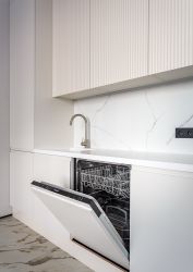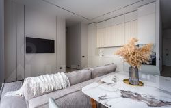Квартира полностью укомплектована всей необходимой бытовой техникой, включая два кондиционера, посудомоечную и стиральную машины, водонагреватель, возможна установка сушильной машины.