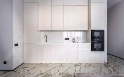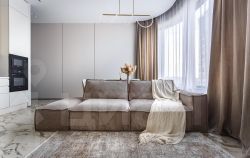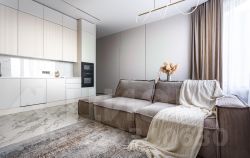 - Кухонная и обеденная зоны объединены с гостиной