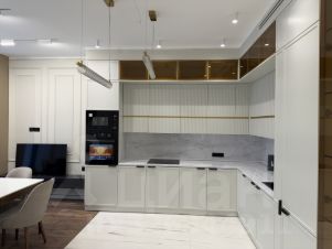 Выполнен качественный дизайнерский ремонт: на полу в комнатах ламинат, в прихожей, санузлах, кухне плитка; окна ПВХ, качественные межкомнатные двери, ровные потолки 3,1 метра, большая кухня гостиная 22 кв.метров со всей необходимой встроенной мебелью и техникой, две изолированные спальни 14 и 10 кв.метров с мебелью, два санузла в плитке - с ванной, с душевой кабиной, просторная прихожая 8 кв.метров.