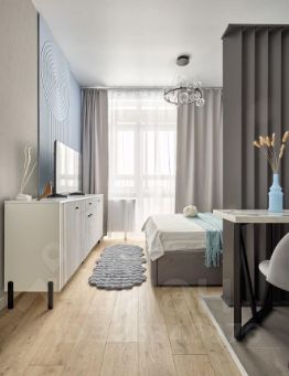 В квартире выполнен современный евроремонт, что создаёт атмосферу уюта и комфорта. В наличии вся необходимая мебель как в комнате, так и на кухне. Из техники есть холодильник, телевизор и стиральная машина, поэтому можно сразу заезжать и жить. Санузел совмещённый.