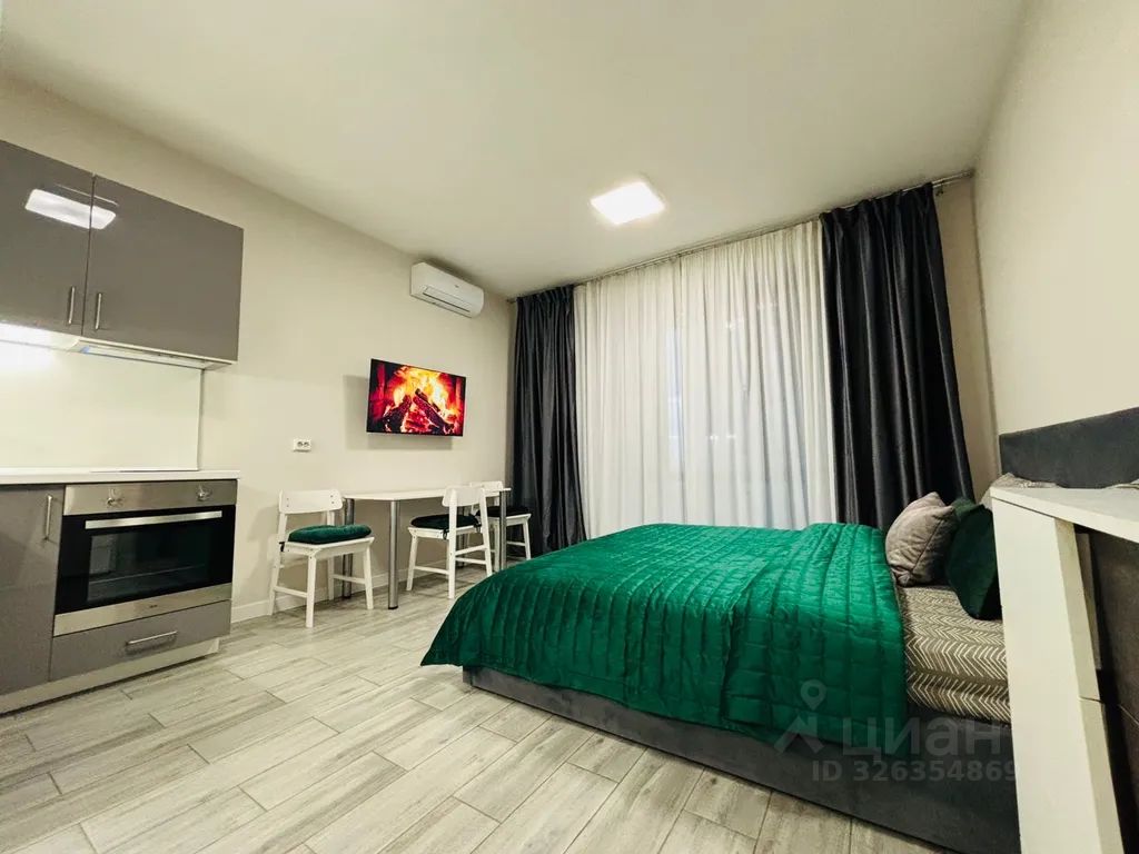 -В студии имеется комфортабельная кровать с высоким ортопедическим матрасом (180х200).