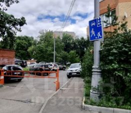 Парковка наземная, огражденная шлагбаумом.