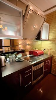 - Квартира полностью укомплектована всем необходимым для комфортного проживания: телевизор, интернет, посудомоечная машина, стиральная машина, кондиционер, микроволновая печь, духовой шкаф, плита, водонагреватель и двуспальная кровать.