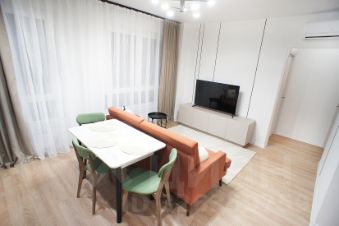 Агент СВЕТЛАНА. Красивая, СТИЛЬНАЯ квартира в НОВОМ ЖК КОМФОРТ-класса. Сдается ВПЕРВЫЕ. Планировка "евро-ТРЁШКА": ПРОСТОРНАЯ кухня-гостиная (18кв.м) и ДВЕ ИЗОЛИРОВАННЫЕ комнаты (12-12кв.м). ДВА санузла. ИНТЕРЬЕР квартиры от профессионального ДИЗАЙНЕРА: единое стилевое решение, трендовая колористика, интересные детали отделки. Грамотное зонирование в кухне-гостиной, комфортная мебель (НОВАЯ), выразительные аксессуары. БРЕНДОВАЯ бытовая техника (ВСЯ НОВАЯ): КОНДИЦИОНЕР (в гостиной зоне), встроенная ПОСУДОМОЕЧНАЯ машина, ИНДУКЦИОННАЯ варочная панель+духовка, печь СВЧ, холодильник, чайник. В СПАЛЬНЕ 2-х сп. кровать с подъемным механизмом (ширина спального места 160см), вместительный ШКАФ, комод, туалетный столик в виде парящей консоли. Вторая комната свободного назначения (КАБИНЕТ/ДЕТСКАЯ). ДИВАН раскладывается (механизм ПАНТОГРАФ). В холле вместительный ШКАФ.