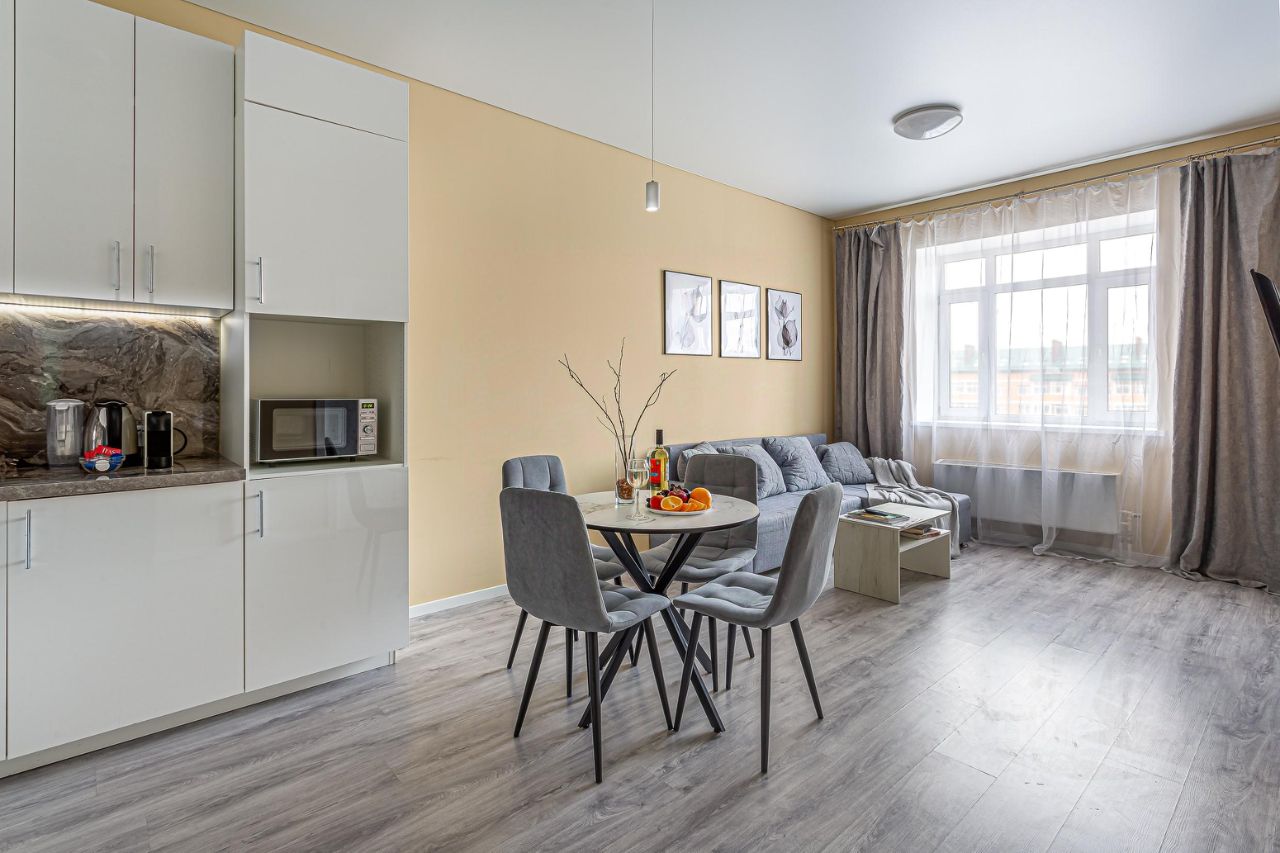 ОСНАЩЕНИЕ: смарт - телевизор, WiFi, полноценная кухня с варочной панелью и микроволновкой, эл. чайником, кофемашиной.