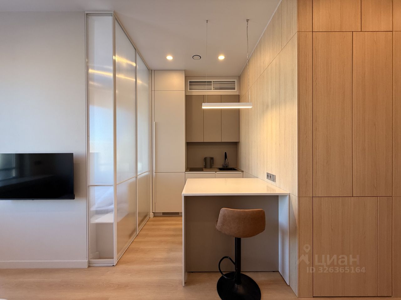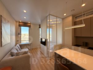Квартира располагается на 14-м этаже 41-этажного здания и занимает площадь 30 кв. м. Просторные окна выходят на улицу, а высота потолков в 3 метра добавляет ощущение объёма и света.