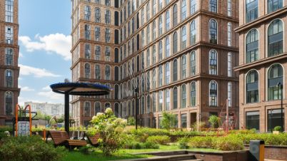 Главное о доме. "Серебряный парк" — шесть корпусов бизнес-класса высотой от 11 до 20 этажей в Хорошёво-Мнёвниках. Архитектура играет на переходе: на нижних уровнях — арки, выше — лёгкие пилоны, а облицовка из стекла и клинкерной плитки подчеркивает ритм фасадов. В лобби с камином и креслами чувствуется камерность клубного формата. На дворовых террасах сделали зоны для спорта, детские площадки, тихие уголки и "Фабрику молодежи" для подростков. Во дворе работает система интерактивной навигации с AR-маршрутами, а под землёй — паркинг с автомойкой и лифтами к корпусам.